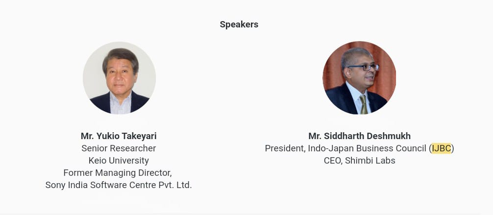 Yukio Takeyari, Senior Researcher, Keio University, and Former Managing Director, Sony India Software Centre Pvt. Ltd, and Siddharth Deshmukh, President, Indo-Japan Business Council (IJBC) and CEO, Shimbi Labs will be the key speakers this time.