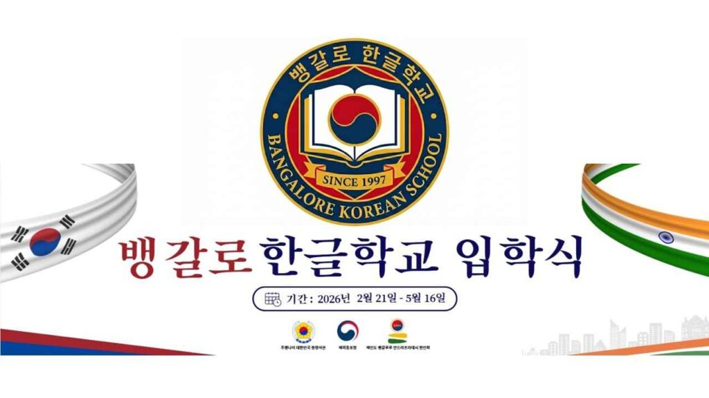 Bengaluru – The Bangalore Korean School held its 2026 entrance ceremony today at the Kocon Center in Sahakarnagar, Bengaluru. Attended by 18 students ranging from preschool to elementary levels, the ceremony marked a significant “new leap” for the school rather than a simple start of a semester. 벵갈루루 – 인도 벵갈루루 사하카나가르(Sahakarnagar)에 위치한 코콘 센터(Kocon Center)에서 21일, 뱅갈로 한글학교 입학식이 성황리에 개최되었습니다. 유치부부터 초등부까지 총 18명의 학생이 참석한 이번 입학식은 단순한 학기 시작을 넘어 뱅갈로 한글학교의 ‘새로운 도약’을 알리는 뜻깊은 자리였습니다.