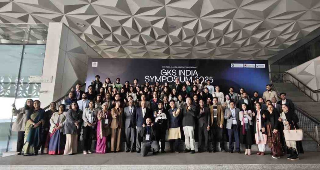 New Delhi, India – The GKS India Alumni Association (GKSIAA), in collaboration with the Korean Education Centre (KEC) India and supported by NIIED, Ministry of Education, Republic of Korea, and Yashobhoomi Kinexin India, successfully hosted the GKS India Symposium 2025 at the Yashobhoomi Convention Centre, New Delhi, on 6th of December 2025. The symposium, built around the theme “Reciprocal Insights: Indo–Korean Approaches to Shared Wisdom and Collective Growth,” brought together diplomats, scholars, alumni, and industry leaders for a day of reflection, dialogue, and collaboration.