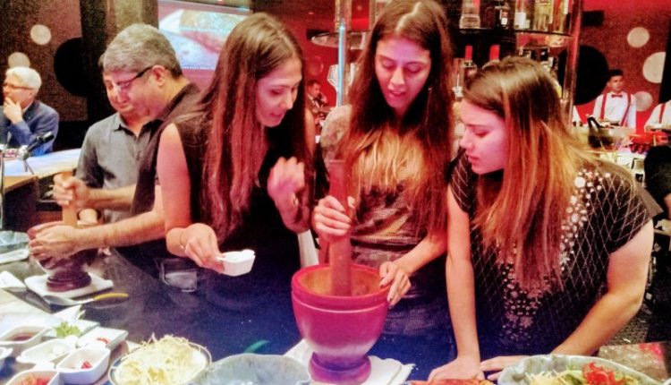 Sreenivasan G, Executive Chef, Radisson Blu Plaza Delhi Airport not only exhibited live the making of the Green papaya salad Som Tam by explaining the recipe and crushing the ingredients right in front of the guests, but he also made them try their hands in making the same. Segregated in various trams, the guests of Dyego team won the prize for the best Som Tam presentation.