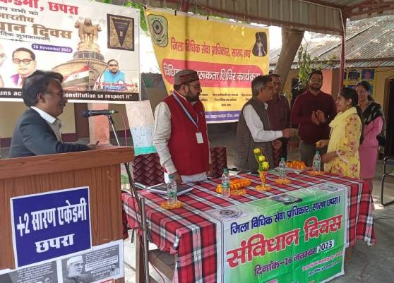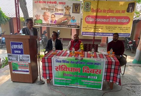 CHHAPRA. On the instructions of Bihar State Legal Services Authority (BALSA), under the auspices of Saran District Legal Services Authority a “General understanding of the Constitution, Fundamental Rights and Fundamental Duties, Right to Education and NALSA Legal Services Scheme for mentally challenged persons 2015” legal awareness event was organized at Saran Academy Plus Two School in Chapra city under the chairmanship of the Chief Guest Prof. (Dr.) Vibhu Kumar, Head of the Department of PG Political Science, Jai Prakash University (JPU).