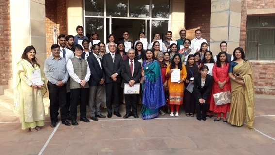 On October 12, the completion ceremony of Teachers’ Training Course – A (3-month training with 360 hrs) was held at the UGC-HRDC (University Grants Commission – Human Resource Development Centre) in Jawaharlal Nehru University, which was attended by Ambassador Kenji Hiramatsu from the Japanese side, and Prof. Ashok Kumar Chawla, Advisor, Ministry of External Affairs (MEA), Prof. M. Jagadesh Kumar, the Vice Chancellor, JNU from the Indian side, among others.