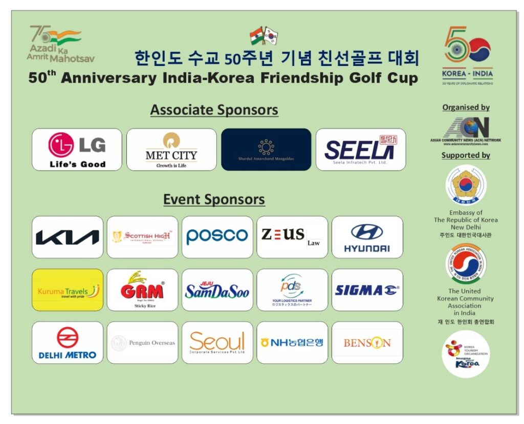 The 50th Anniversary India-Korea Friendship Golf Cup is being organized by the Asian Community News (ACN) Network with the support of the Embassy of Korea and United Korean Community Association on April 15 at Golden Greens Golf Club, Gurugram as part of the year-long celebrations which both India and Korea are celebrating as the golden jubilee year of the establishment of their diplomatic relations.