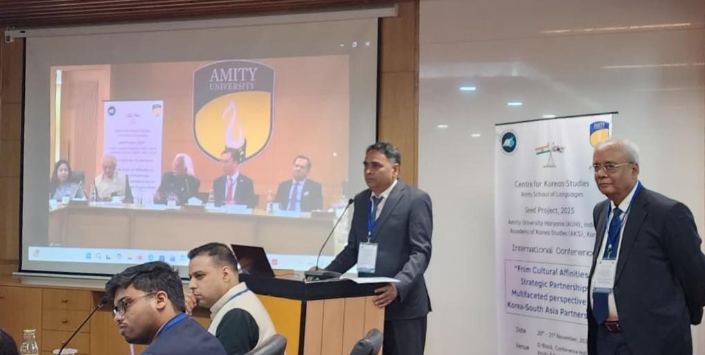 Gurugram, India – Amity University Haryana hosted a landmark two-day international conference titled “From Cultural Affinities to Strategic Partnerships: Multifaceted Perspectives on Korea–South Asia Partnerships” on 20–21 November 2025, under the AUH–AKS Seed Project 2024–2027 supported by the Academy of Korean Studies (AKS), South Korea. The conference took place at the D-Block Conference Hall and brought together eminent diplomats, senior academics, researchers, and members of the Korean community, reaffirming the growing significance of Korean Studies in India.