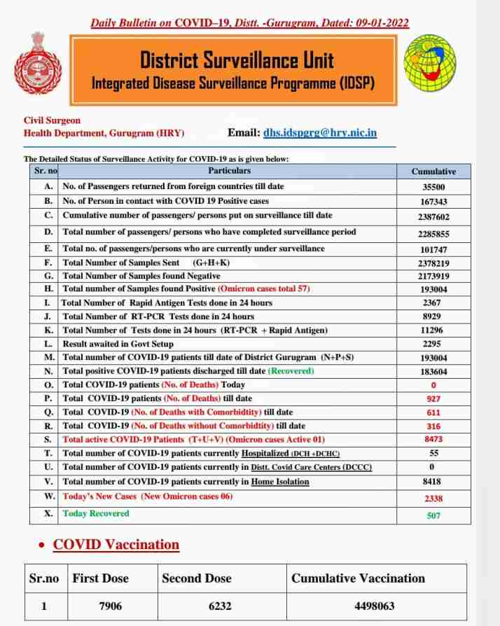 GURUGRAM Data till Sunday, January 9, 2022
