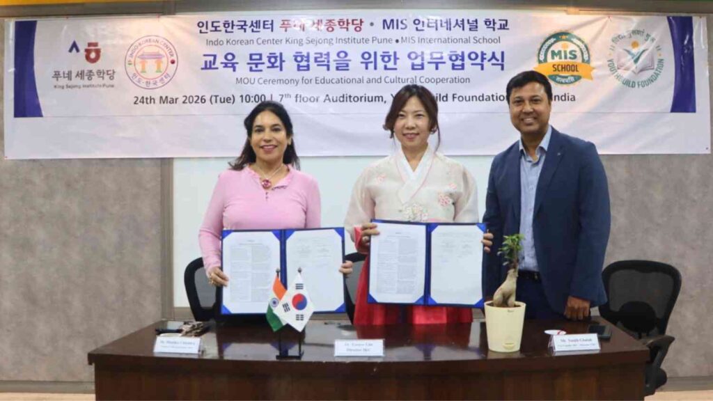 PUNE, Maharashtra, March 25, 2026: The Indo-Korean Center (IKC) Pune King Sejong Institute signed a Memorandum of Understanding (MOU) with MIS International School in Pune on Wednesday. According to IKC, this partnership marks the beginning of a dedicated effort to introduce a comprehensive Korean language and cultural education program tailored for Indian schools in the region.