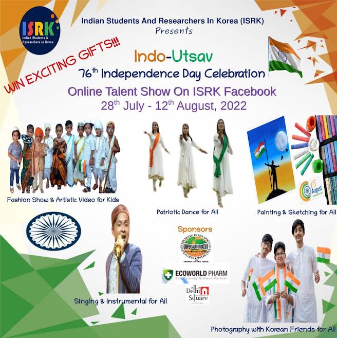 SEOUL: As India is all set to celebrate its 76th Independence Day on August 15, 2022, on this great occasion, the Seoul-based Indian Students & Researchers in Korea (ISRK) association presents its yearly event “Indo-Utsav”.