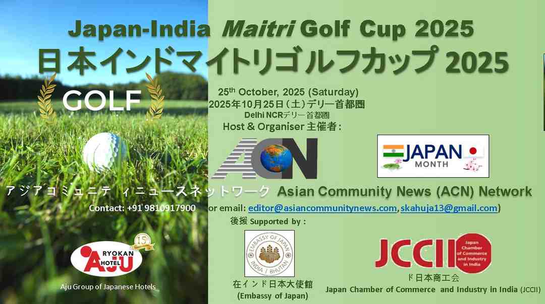 New Delhi – The Delhi NCR region is gearing up to host the Japan-India Maitri Golf Cup 2025 on October 25 (Saturday), a prestigious sporting and networking event organized by Asian Community News Network (ACN Network) and strongly backed by the Embassy of Japan, the Japan Chamber of Commerce and Industry in India (JCCII), and the renowned Aju Group of Japanese hotels. This landmark event, now a signature feature of the annual Japan Month festivities, continues to play a vital role in enhancing bilateral relations through sport, diplomacy, and business engagement.