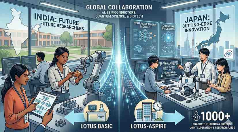 The LOTUS Programme — short for India-Japan Circulation of Talented Youths in Science Programme — is designed to enable young researchers from India to work on joint research projects in Japan under the guidance of principal investigators in both countries. The initiative reflects the growing strategic importance of science, technology and innovation in the broader India-Japan partnership.