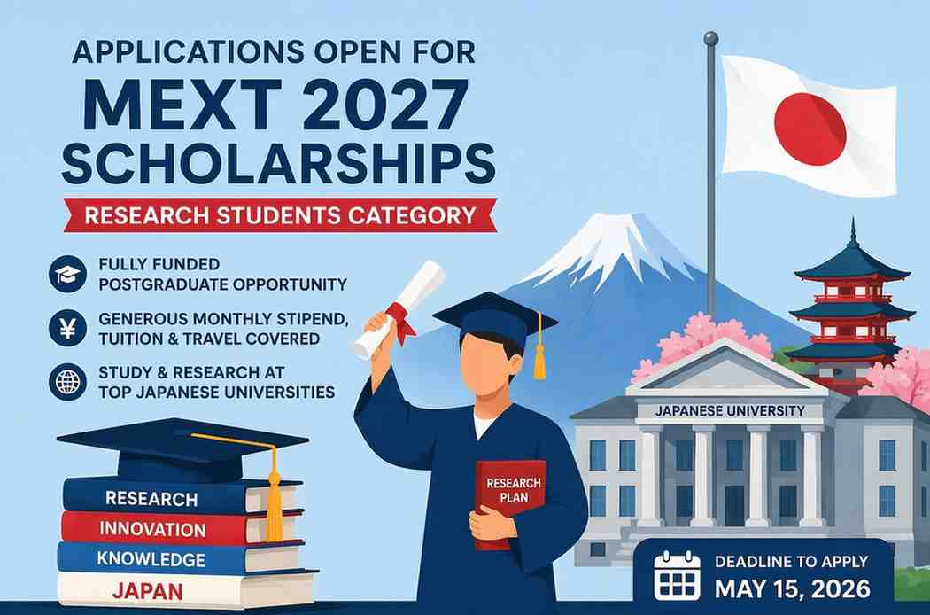 New Delhi, 22 April 2026: Applications for the highly sought-after Japanese Government MEXT Scholarship 2027 under the “Research Students” category have officially opened, offering a major opportunity for students aiming to pursue postgraduate studies in Japan. The scholarship, administered by Ministry of Education, Culture, Sports, Science and Technology, supports international students in undertaking advanced academic research at leading Japanese universities.