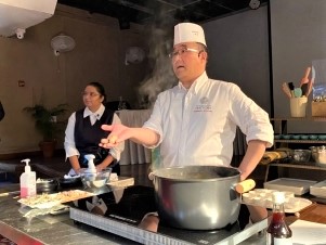 The lecture and demonstration were the first opportunity for the students, most of whom are expected to study culinary arts and become chefs in the future, to sea cooking of Japanese food.
