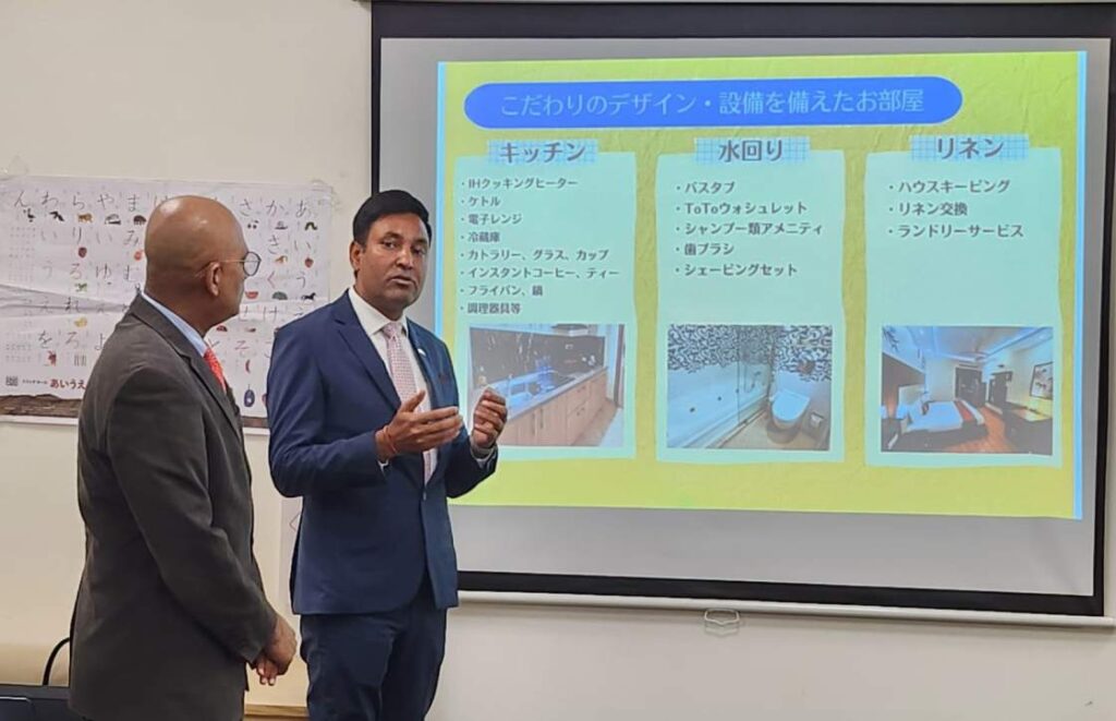 Krishnan Narayan, Founder, Nihon Edutech, and Prakash Yadav, AJU Group of Japanese hotels welcomed the delegation. “It was a proud moment for Aju Group of Japanese Hotels to host the Ehime delegation led by Tokihiro Nakamura San (愛媛県知事 中村時弘), Governor of Ehime Prefecture. In a presentation, I made introduced them the functions of the Aju hotel as well as the Aju Nihon Edutech Centre,” said Yadav.