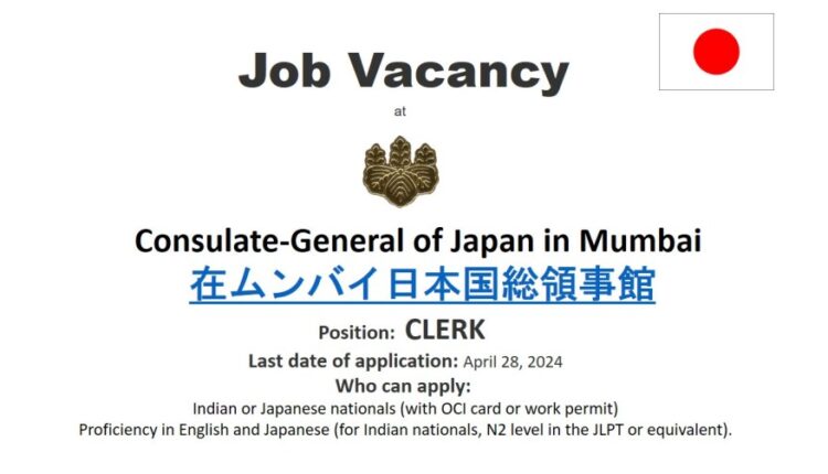MUMBAI: The Consular Section of the Consulate-General of Japan in Mumbai (在ムンバイ日本国総領事館) is looking for locally hired administrative staff – a clerk.