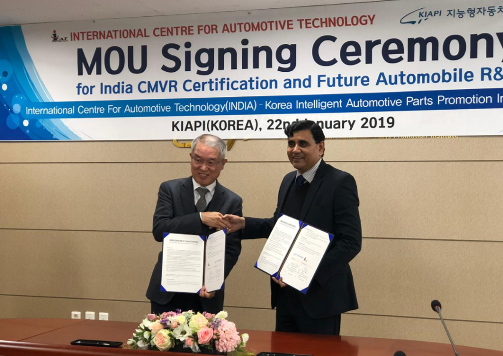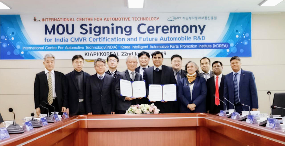 ICAT which was constituted under Rule 126 of Central Motor Vehicle Rules (CMVR) notified by Ministry of Road Transport & Highways (MoRTH), Govt. of India for Testing & Certification of Automobiles and their safety critical components, signed a Memorandum of Understanding (MoU) with KIAPI on January 22 in Daegu City of South Korea.