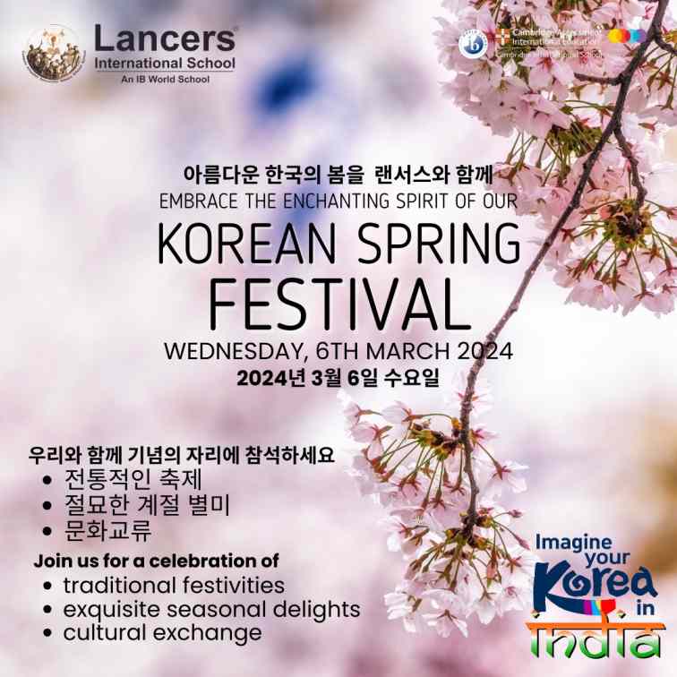 Gurugram: Lancers International School is delighted to announce the celebration of the Korean Spring Festival on March 6, 2024, as a part of the school’s annual cultural festival. 구루그람, – 랜서스 인터내셔널 스쿨은 학교의 연례 문화 축제의 일환으로 2024년 3월 6일 한국 봄 축제를 개최한다고 발표하게 되어 기쁩니다.