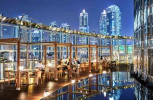 We begin our enjoyable evening on the terrace observing over the famed Dubai Fountain (the world’s prevalent choreographed fountain system, tossing up spectacles set to conventional and modern music every evening, every 30 minutes). And then we head to Amal for a celebration of contemporary Indian cuisine and drinks amidst a magical, wonderland setting this place is whimsical, quirky, and irreverent; the gorgeous views of the famed fountain show makes dining here an experience of a lifetime. The food is almost bewilderingly exotic, try the Galawat twanging with the gorgeous flavour of roasted tomato. Chef’s forte is his pivotal blend of surprising ingredients, which works best with modest dishes. Just when you think Indian cuisine is getting too predictable, Amal’s magnificence is refreshing and memorable.