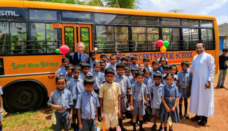 New Delhi. Ambassador Chung-kwang Tien, Representative of Taipei Economic and Cultural Center (TECC) in India, inaugurated a school bus at St. Vincent English Medium School, a Catholic education institute under the Holy See’s sight, at Singannagudem, Krishna District in Andhra Pradesh, India on July 11.