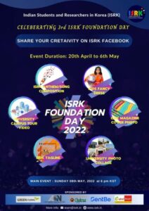 SEOUL: Seoul-based students’ welfare organization Indian Students and Researchers in Korea (ISRK) is celebrating its foundation day on May 8 when it completes three years of successful operations.