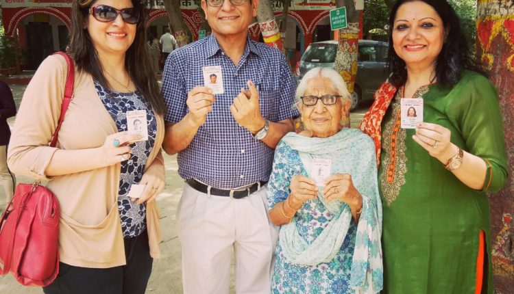 On Sunday, Dropti Nagpal walked down to the polling station in the vicinity with her son Dr. Sanjeev Nagpal, daughter-in-law Dr. Lata Nagpal and grandchildren in the sultry afternoon as her morning was packed as usual.