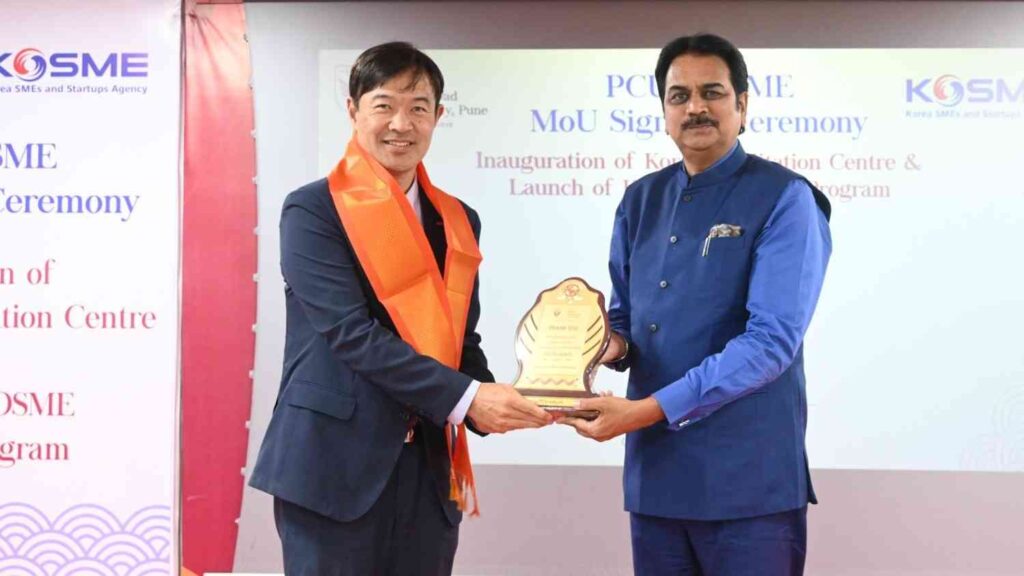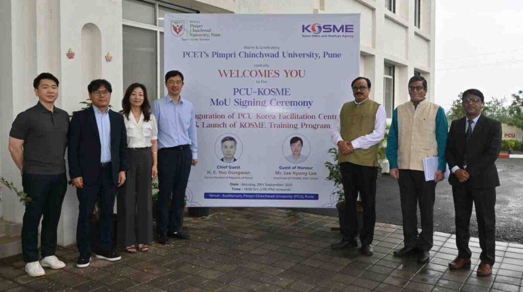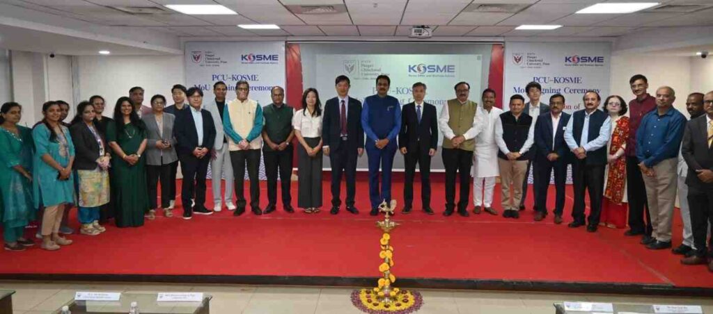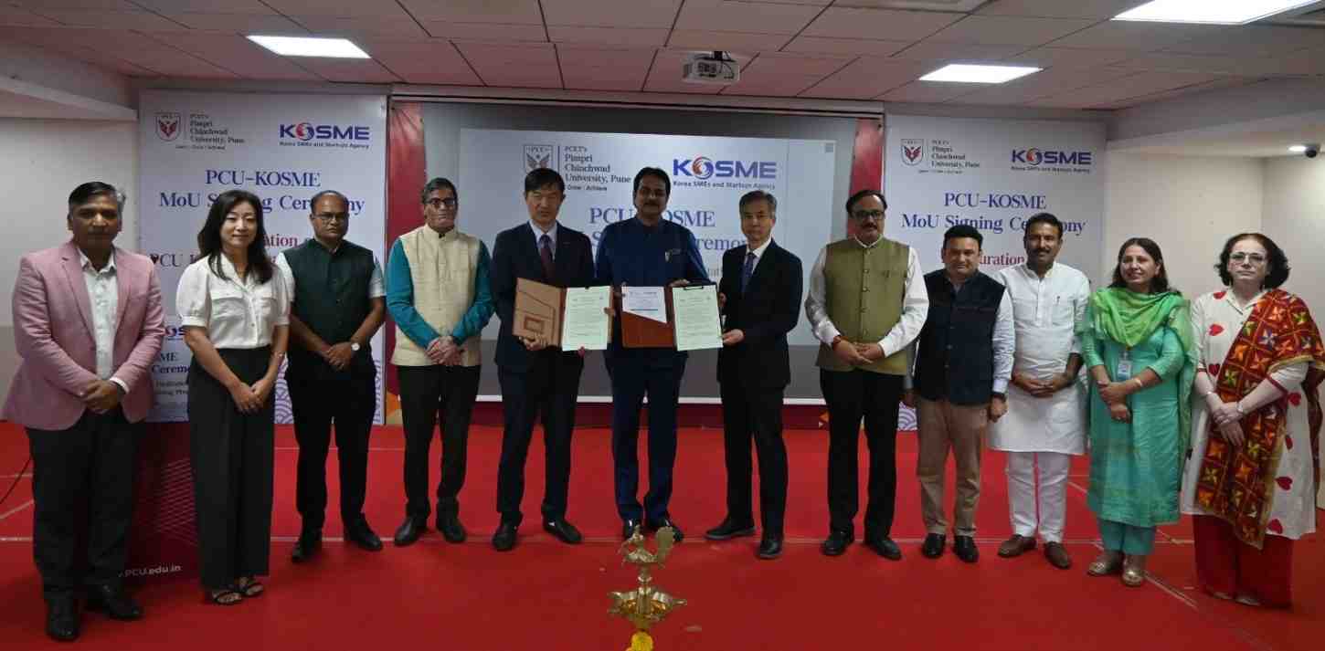 Pune, India – In a significant step to boost Indo–Korean collaboration, Pimpri Chinchwad University (PCU), Pune, and the Korea SMEs and Startups Agency (KOSME), New Delhi, have signed a Memorandum of Understanding (MoU) aimed at creating synergies in workforce development, employability, startup incubation, and industrial cooperation.