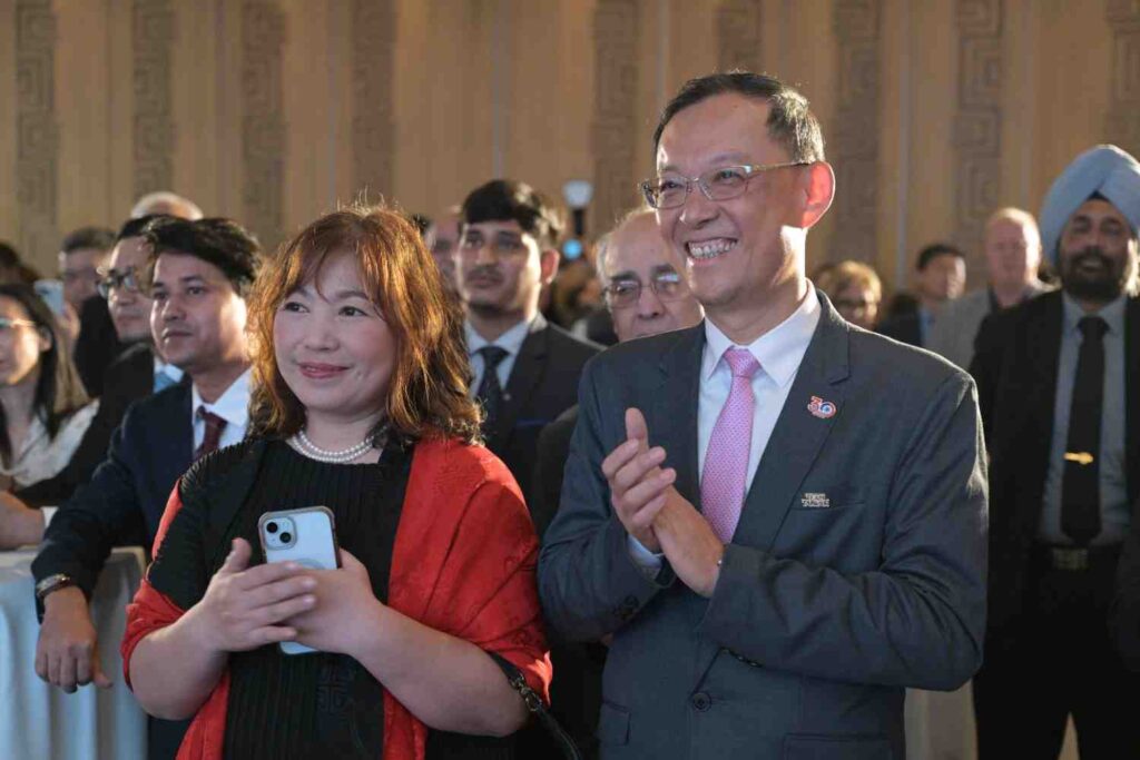 During the Taiwan National Day reception, Sunit Bora, deputy chief of mission Robert Hsieh, and assistant representative Isabel mesmerised the guests with their outstanding performance. Sunit Bora sang songs, Robert Hsieh played piano, and assistant representative Isabel sang a song.