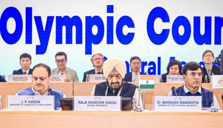 New Delhi, September 8th 2024: Former Indian shooter and veteran sports administrator Raja Randhir Singh was officially elected unopposed as the first Indian President of the Olympic Council of Asia at the 44th Olympic Council of Asia General Assembly at the Bharat Mandapam, Pragati Maidan in New Delhi on Sunday. Union Minister of Health and Family Welfare and Union Minister of Chemicals and Fertilizers JP Nadda, Union Minister of Youth Affairs and Sports, Dr. Mansukh Mandaviya, Minister of State for Youth Affairs & Sports, Smt. Raksha Nikhil Khadse, and Indian Olympic Association President P T Usha, were also in attendance along with sports leader from all 45 Asian countries.