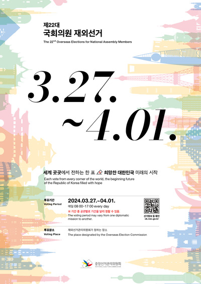 제22대 국회의원 재외선거: Starting from March 27, the voting process will continue at the Embassy and consulates till April 1, ahead of South Korea's national assembly elections scheduled on April 10.
