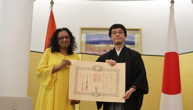 Sarita Sundaram sensei, President, Teachers Association of Japanese, Mumbai, conferred Order of Rising Sun, Gold and Silver