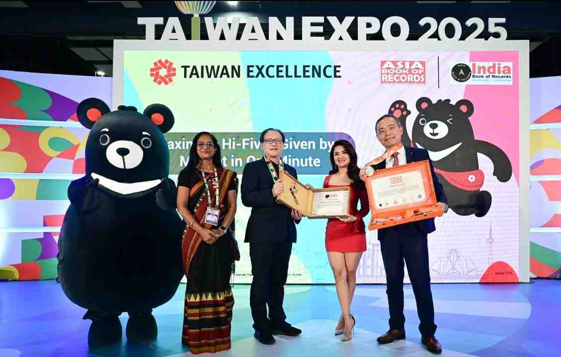 Another major attraction of the day was a fun and engaging experiential activity that stole the spotlight. Taiwan Excellence hosted a record-breaking event as part of its Give Me Five campaign. The highlight of the event was the popular mascot, Fu Bear, who is on a mission to spread joy. Taiwan Excellence successfully secured two new records in both the Asia Book of Records and the India Book of Records—specifically for the “Maximum Hi-Fives Given by a Mascot in One Minute” and “Maximum Hi-Fives Given by People to a Mascot.” This lively event also featured a special guest appearance by popular Indian actress Avneet Kaur, who engaged with a large crowd of fans and experienced Taiwan’s cutting-edge technology firsthand.