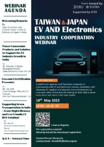 The objective of the webinar is to provide a platform for Japanese and Taiwanese companies to communicate with the EV and electronics industry, to connect with Taiwanese EV suppliers and Japanese auto manufacturers to know each other, and to kick-off meetings for both sides to know more about the next trends in the Indian market.