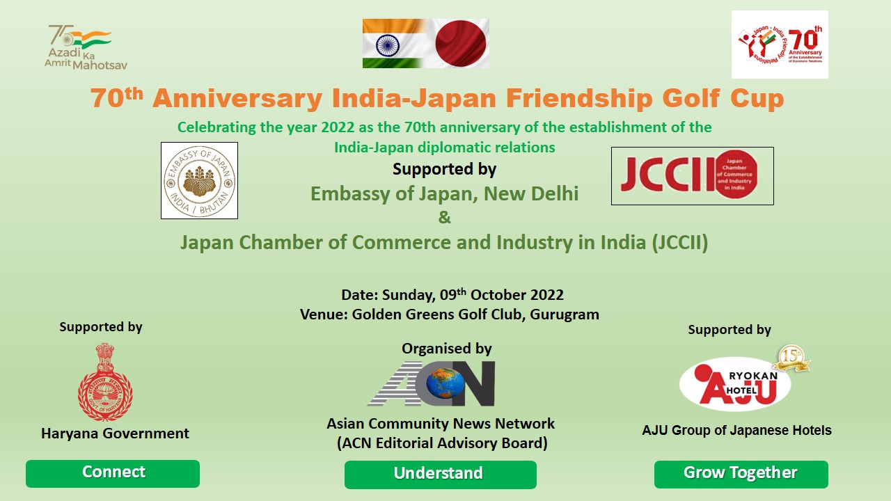 The “70th Anniversary India-Japan Friendship Golf Cup”, which is being organised by Asian Community News (ACN) Network (www.asiancommunitynews.com), is likely to be attended by the central government ministers including Ms. Meenakashi Lekhi, Minister of State in the Ministry of External Affairs, and Minister of State in the Ministry of Culture, Faggan Singh Kulaste, Minister of State in the Ministry of Steel, and Minister of State in the Ministry of Rural Development, and Arjun Munda, Minister of Tribal Affairs.