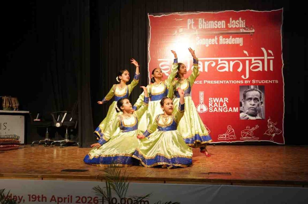 Gurugram: The timeless charm of Hindustani classical music and Kathak dance came alive in the city as Pt. Bhimsen Joshi Sangeet Academy, in collaboration with Swar Kala Sangam, presented its annual cultural showcase “Swaranjali” on April 19. The event was conceived as a tribute to the legendary Bharat Ratna Bhimsen Joshi, celebrating his enduring legacy and the spirit of India’s classical performing arts.